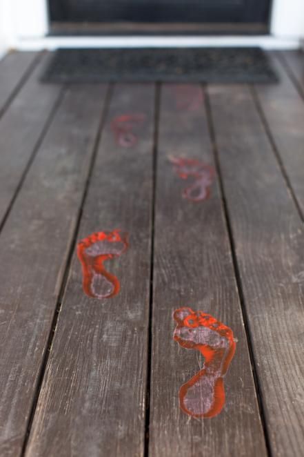 Diviértete con algo de pintura roja y deja unas huellas de pies descalzos en el suelo. Os aseguro que vuestros invitados tendrán una buena dosis de escalofríos.