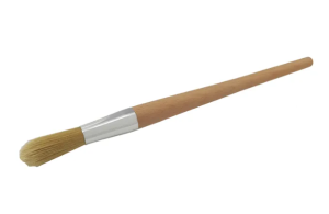Si alguna vez has intentado hacer un dibujo con plantilla usando una brocha normal y te ha quedado un manchón borroso, es porque te faltaba este aliado. El pincel de estarcido tiene las cerdas cortas, densas y cortadas en plano (rectas).